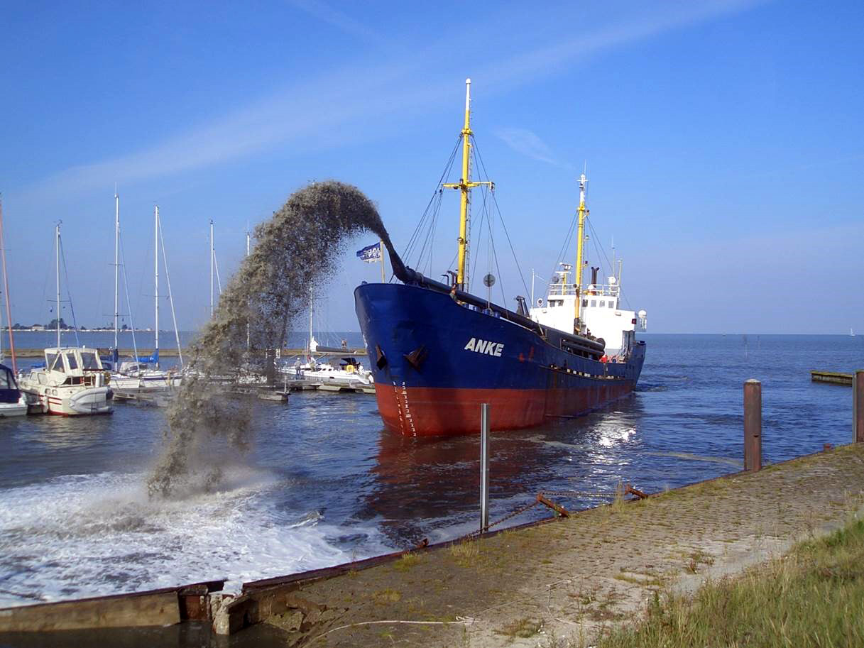 Sand is used as a basic material for land reclamation of new areas. The hopper dredgers are taking the sand from the sea bottom or river beds. At the place of destination, the sand will be either dumped or pumped ashore. Furthermore, the sea sand is used as a raw material in the concrete industry.